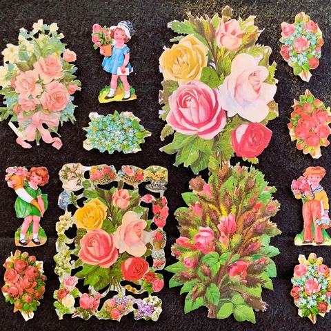 10kpl keijuaiheisia vanhoja, hyväkuntoisia kiiltokuvia arkissa.