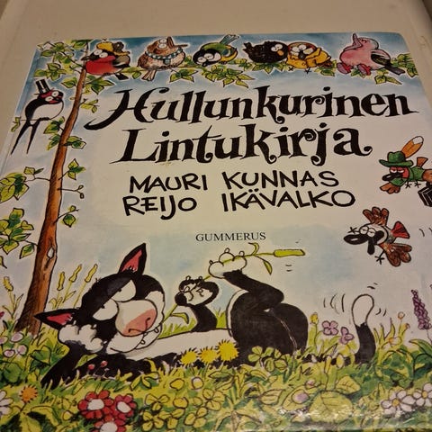 Hullunkurinen Lintukirja Mauri Kunnas.,tutuimmat lintumme esitellään hauskalla tavalla.Kirja on kuin uusi.