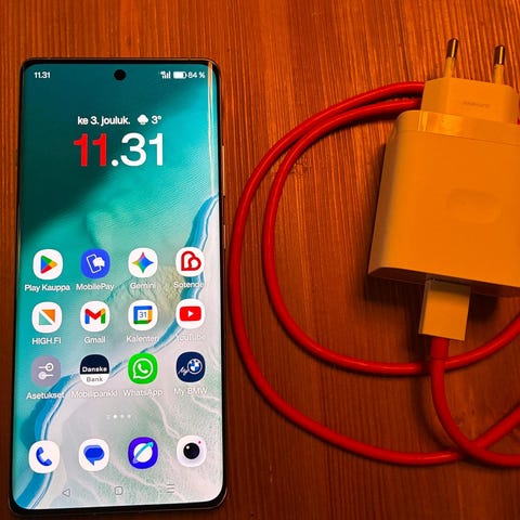 Oneplus 12R matkapuhelin. Muisti 16/256 GB, näyttö 6,78 amoled, suojattu nanonesteellä. Naarmuton, alkuperäinen suojakuori ja pakkaus. Todella siisti, uutta vastaava ulkonäöltään. Akun kunto 99%. Takuuta 2/27. Laturin johto mukaan. Toimitus lähialueelle tai postitus.