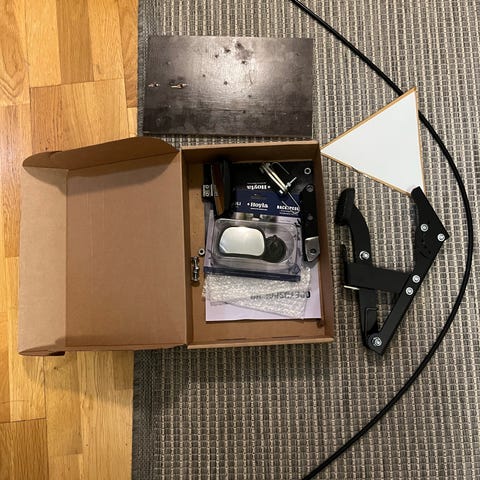 Myydään Hoyla opetuspoljinsarja, apupeilit, opetuskolmio ja Startti -kirja. Poljin asennettu vanerilevyyn.