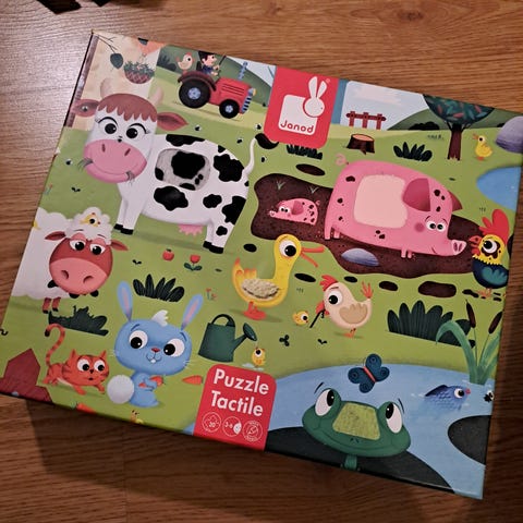 Taaperolle lattiapalapeli 6 palaa. Laatikko kärsinyt mutta palat siistit. Palat tosi isoja, kuudesta palasta tulee 40x60 kokoinen kuva.
