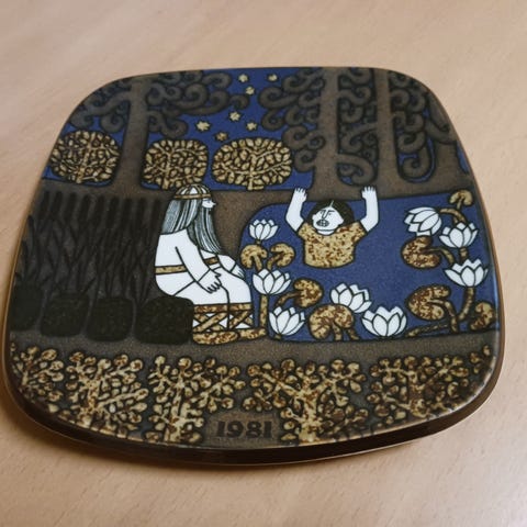 Vanha Arabian lautanen, josta tehty seinätaulu. Ehjä ja ikäisekseen hyväkuntoinen.