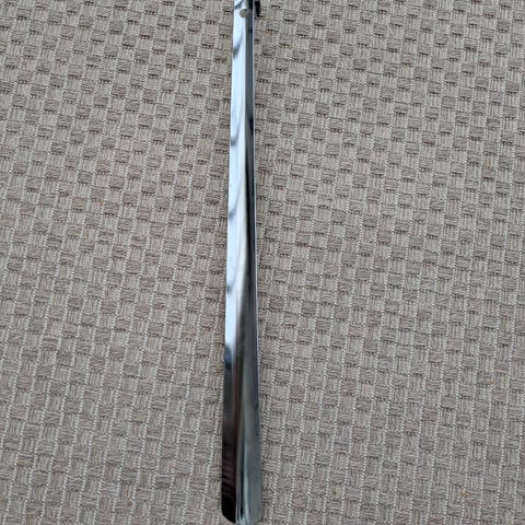 Metallinharmaa kaksikerroksinen kenkäteline. Ylimmästä kerroksesta puuttuu yksi ruuvi (ks. kuva), ei vaikuta käyttöön.