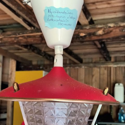 Hyväkuntoinen käytönjälkiä jonkin verran, kuvissa heijastumaa, noin 1960/1970-luvulta, vintage kattovalaisin made in Finland Lival vihreä, ehkä/todennäköisesti Stig Lindström, 60W,