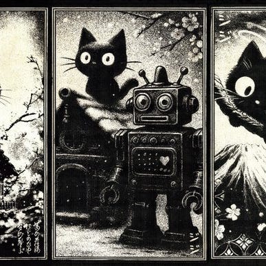 #JijiArt #NekoAtsumeInspired #BlackCatAesthetic #ÆArtworks #JapaneseInkStyle #KawaiiNoir #ContemporaryUkiyoE