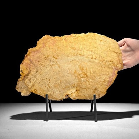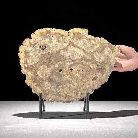 Upea kivettyneen puun viipale räätälöidyllä jalustalla.