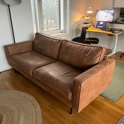 Linkki tuotteeseen: https://www.veke.fi/product/scandic-copenhagen-3-istuttava-sohva-konjakinruskea-kentucky-9-mustat-jalat?channable=05c6166964003634323638393015&gad_source=1&gad_campaignid=20621494960&gbraid=0AAAAADucKdvEhf0WAFelyysEhbHAOna1O&gclid=EAIaIQobChMIg-u08uDJkQMVgguiAx1wgQGtEAQYASABEgKjsvD_BwE