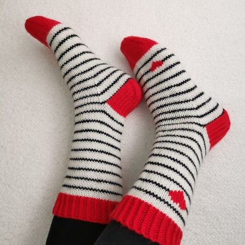 Sukat on neulottu 7 veljestä ja myhome living langoista, molempien koostumus 75 % villaa ja 25 % polyamidia, ovat kokoa 39-40. Terän pituus 25 cm ja varren pituus 19 cm ennen kantapäätä.