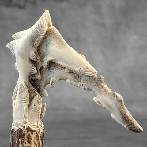 Kaiverrus, Stunning Human Skulls & Octopus Carving from a Deer Antler on stand