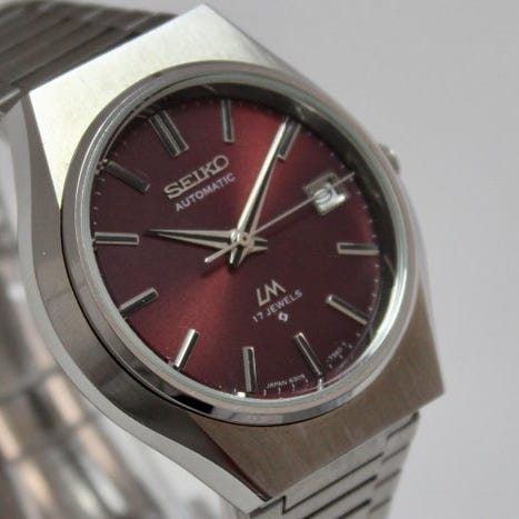 Seiko automaattinen vintage-kello, jossa on klassinen estetiikka uudelleen tulkiten huolellisen personoinnin avulla. Kellossa on erittäin houkutteleva sininen sunburst-viimeistely, jossa on säteittäinen pinta, joka tarjoaa erilaisia sävyjä valon mukaan, tuoden syvyyttä ja luonnetta kokonaisuuteen.