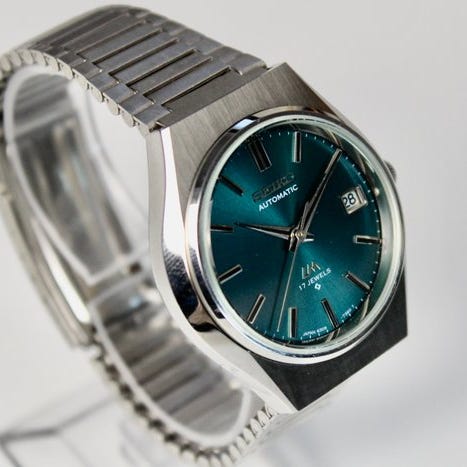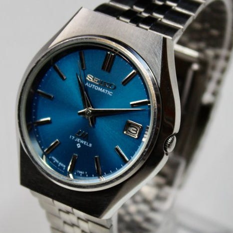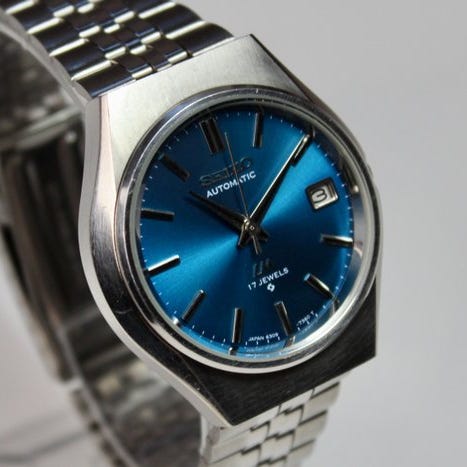 Seiko automaattinen vintage-personoitu – sininen auringonpaisteinen kellotaulu – 17 rubiinia