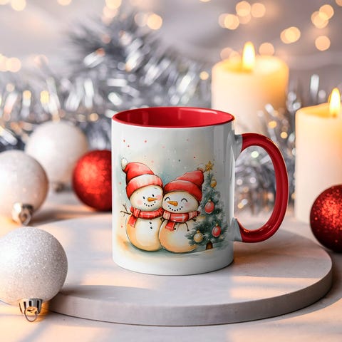 Luo lämmin ja tunnelmallinen hetki talven juomahetkiin tällä hurmaavalla joulumukilla. Mukia koristaa iloinen lumiukko, jolla on päässään punainen joulupukin hattu ja kaulassaan raidallinen huivi. Pehmeä, vesivärimäinen kuvitus ja pienet jouluvalot tuovat mukiin nostalgista joulun taikaa.