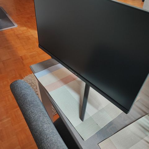 Erittäin siisti tehokas näyttö tukevalla jalustalla, virtajohto
