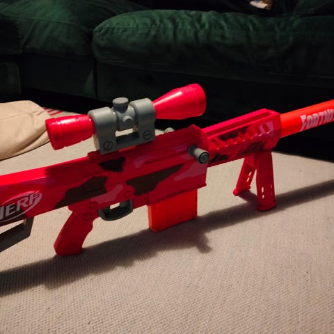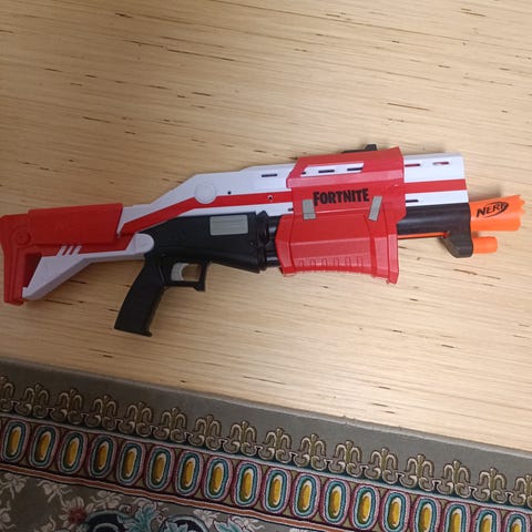 Myydään kuvan Nerf vaahtomuoviammus taktinen haulikko. Käyttää kuvan suuria Nerf Mega -ammuksia.