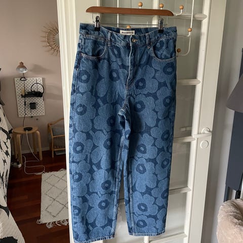 Marimekko Barrel Unikko farkut, käyttämättömät. Laput paikallaan. Myyntiin koska koko olikin väärä😕 koko 31/28.
