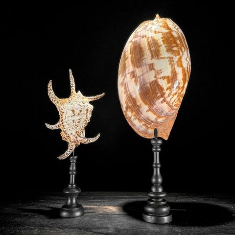 Tämä suuri kotelo on pallomainen tai lähes soikea muodoltaan. Sen columella on kolme helposti erottuvaa vinoa poimua. Aukko on leveä ja lähes yhtä pitkä kuin kotelon itse, eikä siinä ole operkulumia. Siinä on erittäin suuri, turvonnut ja takaa laajentunut runkokiilto. Yksi sen vaikuttavimmista piirteistä on olkapää, jossa on näkyvät ja kaarevat ontot piikit. Nämä piikit tulevat yleensä vähenemään kasvun myöhemmissä vaiheissa. Spiraali on yleensä hyvin lyhyt.