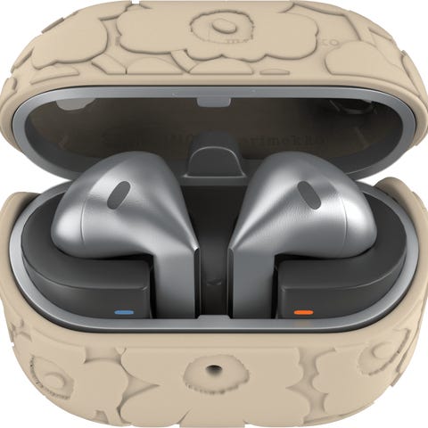 Kohokuvioinen suojakotelo Unikko-kuosilla. Osa Samsung x Marimekko -erikoismallistoa. Sopii Galaxy Buds3 ja Galaxy Buds3 Pro -kuulokkeiden latauskotelolle.