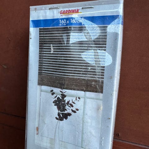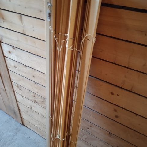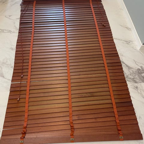 Puinen sälekaihdin, koko n. 125 x 70cm, väri tuommoinen mahonginruskea.