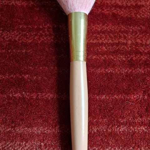 Uusi, käyttämätön "puuterihuisku", jonka avulla voi tehdä kauniin häivytyksen esim. poskipunalla tai aikaansaada muuten luonnollisen meikkipinnan kasvoille. Laadukas luonnonharjas, joka kierrettävissä hygienisesti putkilon sisään säilöön. Kätevä matkalla.