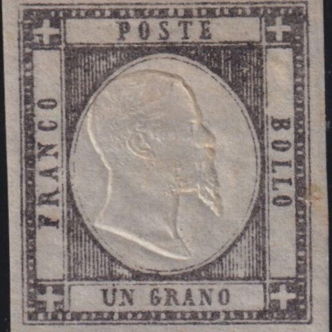 1/2 g Bruno Bistro, su carta spessa, Sass 18°C, margini integroitu, F. Chiav Ex Coll. Imperato, harvinaista.