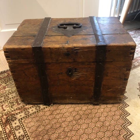 Avain mukana mutta lukko ei nyt toimi ,- korjattavissa ehkä. Ei pahoja tuoksuja, mutta maali lohkeillut. Hinnassa huomioitu.
