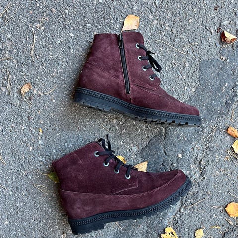Mustat mokkanahkaiset Tero Palmroth -nilkkurit. Varressa joustin ja vetoketju. Vähän käytetyt, edelleen hyvin siistit.