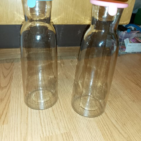 Vihertävää lasia pikari ja vaasi dekä ruskea koristepullo1e/kpl