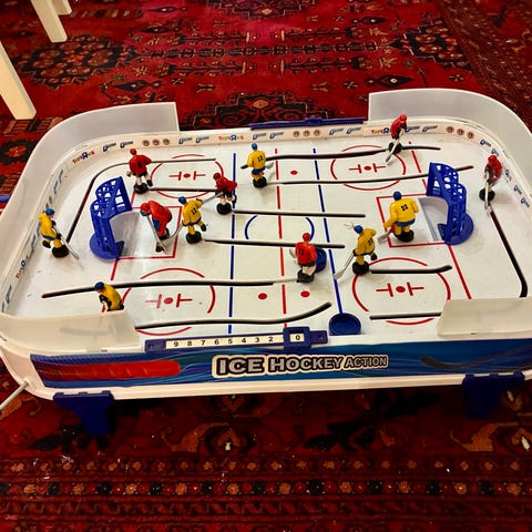 Annetaan hyvin vanha mutta hyvin toimiva Stiga pöytä jääkiekkopeli. Yksi repeymä maalin lähellä jäässä. Sen saa teipattua mainiosti. Vaihto-osiakin löytyy! Vain nouto Turusta.