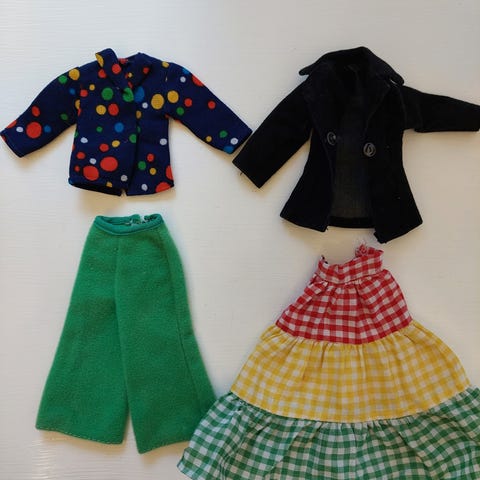Raidalllinen mekko Daisy nukelle. Siistissä kunnossa.
