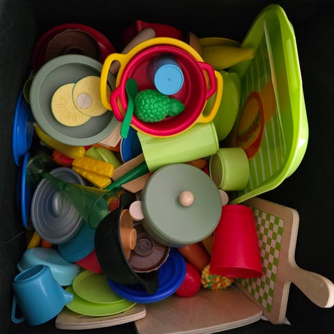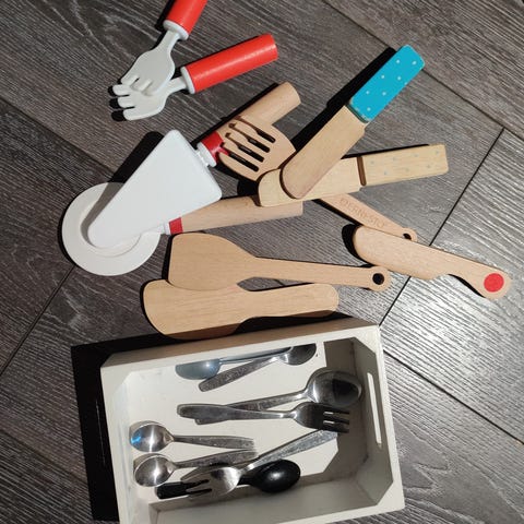 Iso kasa posliinisia astioita keittiöleikkeihin, kaikki kerralla.