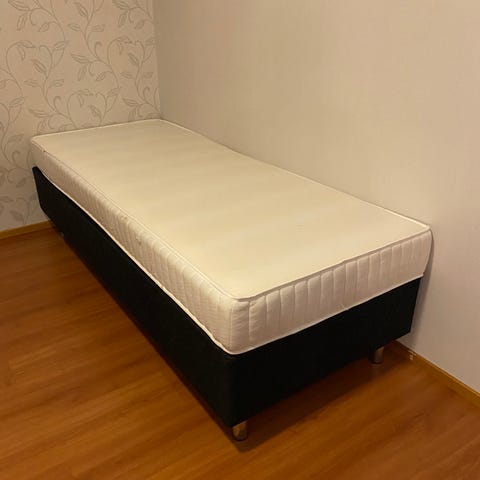 80cm leveä ja 200cm pitkä yhden hengen sänky. Ei enään tarvetta omasta puolesta 😅