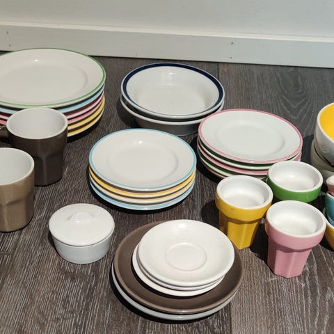 Erilaisia lastoja, ottimia ja ruokailuvälineitä keittiöleikkeihin