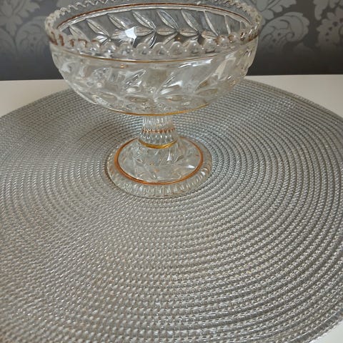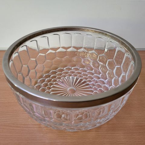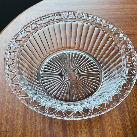 Vaalean turkoosin värinen lasinen tarjoilukulho.