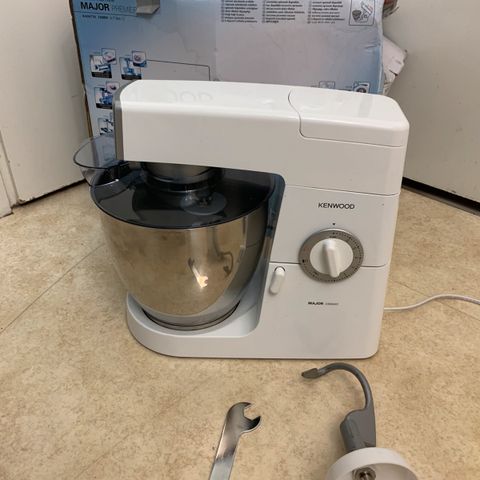 Kenwood Major Premier yleiskone, 6,7 litran kulho, ruostumaton teräs. Mukana erillinen tehosekoitin ja erilaiset lisäosat, kuten vatkain, taikinakoukku ja vispilä. Sopii kotitalouskäyttöön monipuoliseen ruoanvalmistukseen.