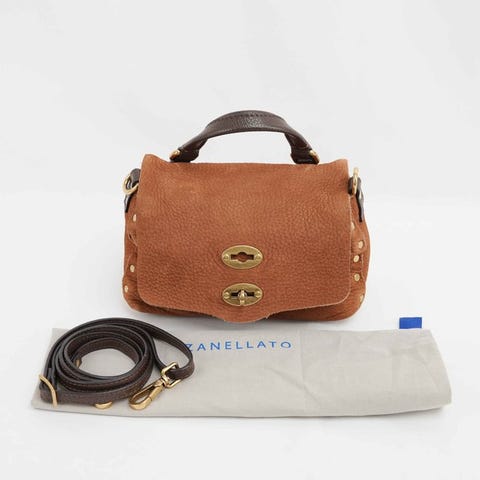 Sisäpuolella laukussa on tummasta kankaasta valmistettu vuori, jossa on vetoketjullinen tasku, nahkainen aitoustarra, jossa lukee 'Postina – The Bag', ja metallinen Zanellato-brändikilpi, jossa on leima 'Made in Italy', mikä vahvistaa sen alkuperän.