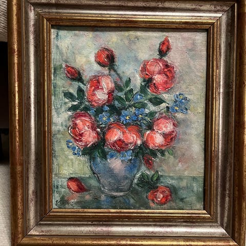 Öljyvärimaalaus värähtellevä kukka-asetelma, Allan Riutta