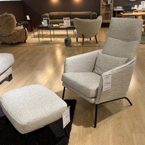 Sitsin Siri-nojatuoli on siro ja ryhdikäs nojatuoli, jossa on korkea selkänoja. Siro jalkarakenne tasapainottaa tuolin ilmettä. Ajattoman minimalistinen muotoilu ja istuinmukavuus tekevät Siri-nojatuolista kodin suosikki-istuimen. Siisti myymälämalli.