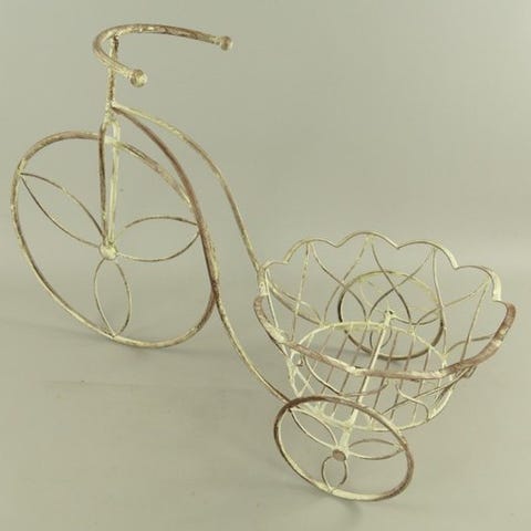 Hauska kukkaruukku. Valmistettu metallilangasta ja muodoltaan polkupyörä. Kaunis valkoinen väri. Mitat ovat seuraavat (+/-):