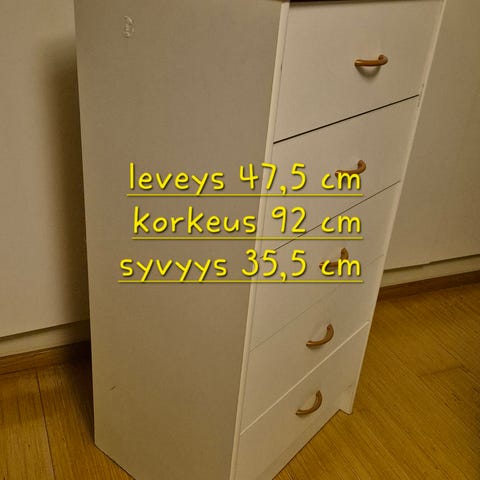Elämää nähnyt lipasto, naarmuja ja kolhuja.