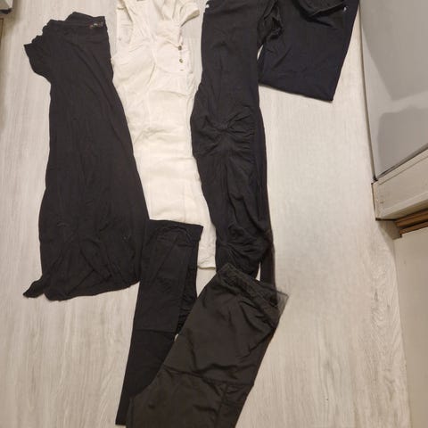 Setti äitiysvaatteita mm. 3-4kpl imetysliivejä koko XL lindex ja lidl. Kahdet Anna Field raskauslegginsit muistaakseni kokoa L. Flanellisetti pusero ja raskaushousut 2kpl (mustana ja vihreänä) XL. Imetys mekko noin koko M/L. Muutama muu raskaus/imetysaikaan esim kesämekko sopii hyvin raskaana olevalle. En kuvaa erikseen.
