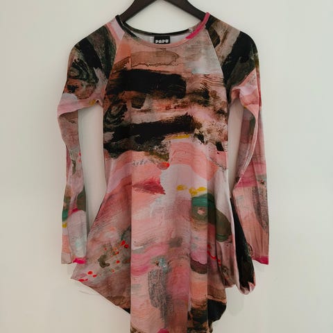 Siistissä kunnossa oleva Papu mekko / tunika. Koko xs, mutta menee hyvin vielä koossa S/M. Voi käyttää vyön kanssa tai ilman. Mekossa on pesuaineen tuoksua.