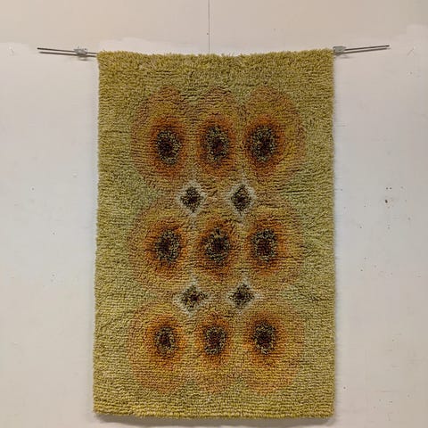 Hieno ja siisti retro ryijy myytävänä. Suunnittelija Maija Kolsi-Mäkelä. Ei hajuja. Koko 113x156 cm hapsuilla.