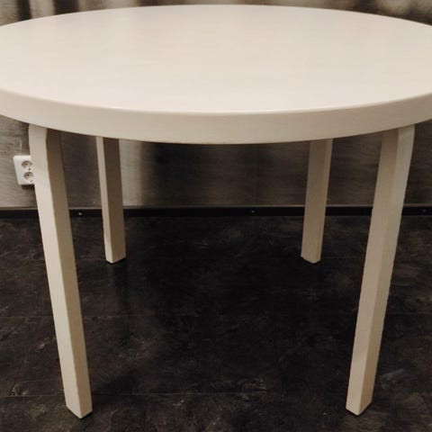 Todella siisti ja hyväkuntoinen Alvar Aalto artekin pyöreä pöytä valkoisella laminaatti-pinnalla. Tukeva ja kaikin puolin ehjä.