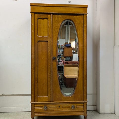 Kuvan upea antiikki vaatekaappi etsii uutta kotia. Kaappi aikanaan kunnostettu. Jalat uusittu. Avain tallessa ja Lukon saa toimimaan. Avain ei poistu lukosta lukitus asennossa. Sisusta siisti eikä ole hajuja. Runko ehjä ja tukeva. Vanhaa madon reikää.