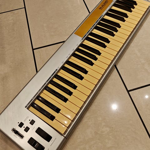 (Kerran käytetty!) M-Audio Oxygen Pro Mini on midi-koskettimisto, jossa on 32 kosketinta. Laitteessa on useita säätimiä ja liitännät musiikin tuottamiseen ja ohjaukseen. Sopii musiikin harrastajille ja ammattilaisille, jotka tarvitsevat kompaktin ja monipuolisen midi-koskettimiston.