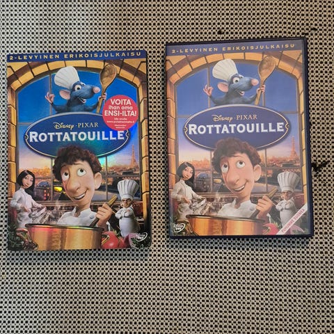 Disney Pixar klassikot: Rottatouille DVD. Kielet ja tekstitys suomi/ruotsi/englanti/islanti. Valmistusvuosi 2007. Kesto 108 min. Nouto Leppävedeltä, postikulut ostajalle tai toridiili. MMM.