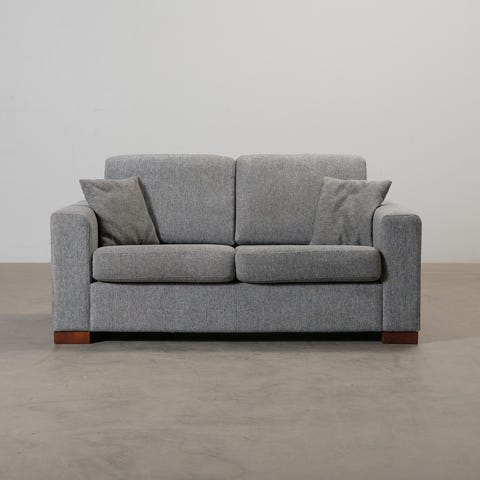 Mukava ja ajaton 2,5-istuttava sohva harmaalla kangasverhoilulla, puisilla jaloilla ja rahilla, joka tekee rentoutumisesta entistäkin mukavampaa.