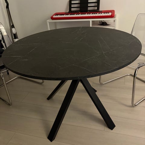 Hyvässä käytetyssä kunnossa oleva Pyöreä ruokapöytä.