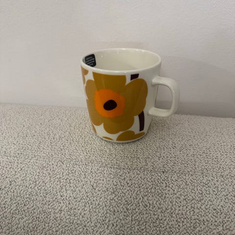 Uusi/Käyttämätön Marimekon Unikko muki, isommassa 4dl koossa.