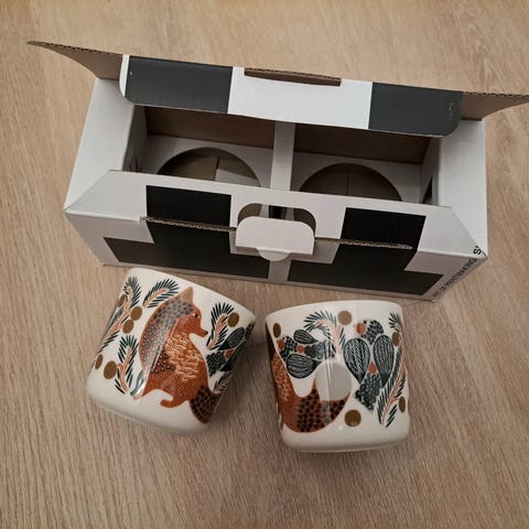 Uusi/Käyttämätön Marimekon Ketunmarja kahvikuppi. Isompi 4dl koko.